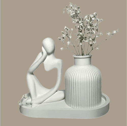 Set of Thinker-Statue, Tray & Vase | 3 Items