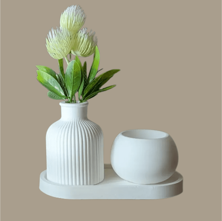 Set of Candle-Pot, Tray & Vase | 3 Items